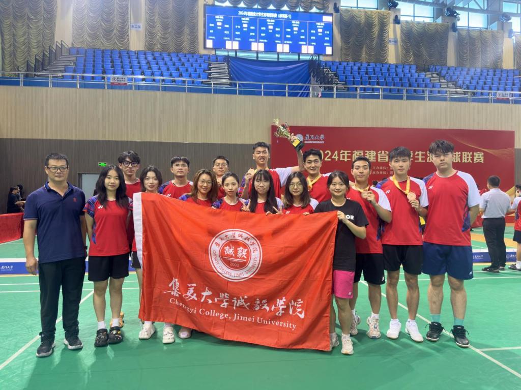 近日,由福建省教育厅主办,厦门大学承办的2024年福建省大学生羽毛球联赛在厦门大学翔安校区圆满落幕。比赛共有来自省内各高校61支队伍参加,我院羽毛球队在叶金勇副教授的指导下,获得男子团体第三名的优异成绩。