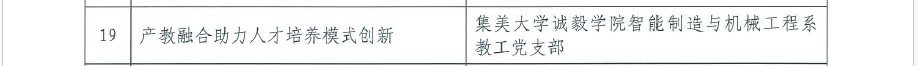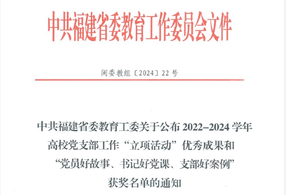 近日,中共福建省委教育工委发布《关于公布高校党支部工作“立项活动”优秀成果和“党员好故事、书记好党课、支部好案例”获奖名单的通知》,我院3个项目获奖。其中:智能制造与机械工程系教工党支部项目《产教融合助力人才培养模式创新》获本科院校党支部工作“立项活动”优秀成果二等奖;机关第一党支部林伟毅《桃李满园铸华章,党员本色映初心》获本科院校“党员好故事”;马克思主义学院党支部案例《构建“党建+”育人共同体,打造马院铸魂育人新格局》获本科院校“支部好案例”。