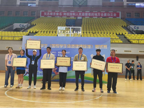 10月11日至13日,由福建省教育厅主办,集美大学承办的2024年福建省《国家学生体质健康标准》测试赛在集美大学圆满落幕。比赛共有来自省内各高校40支队伍参加,每支队伍由4男4女组成,每位运动员参加七个项目。我院8名运动员不畏强敌、爱拼敢赢,在激烈的竞争中取得了赛事团体二等奖的好成绩及部分单项的前八名,体育与艺术系杨远智老师获得“优秀教练员”荣誉称号。