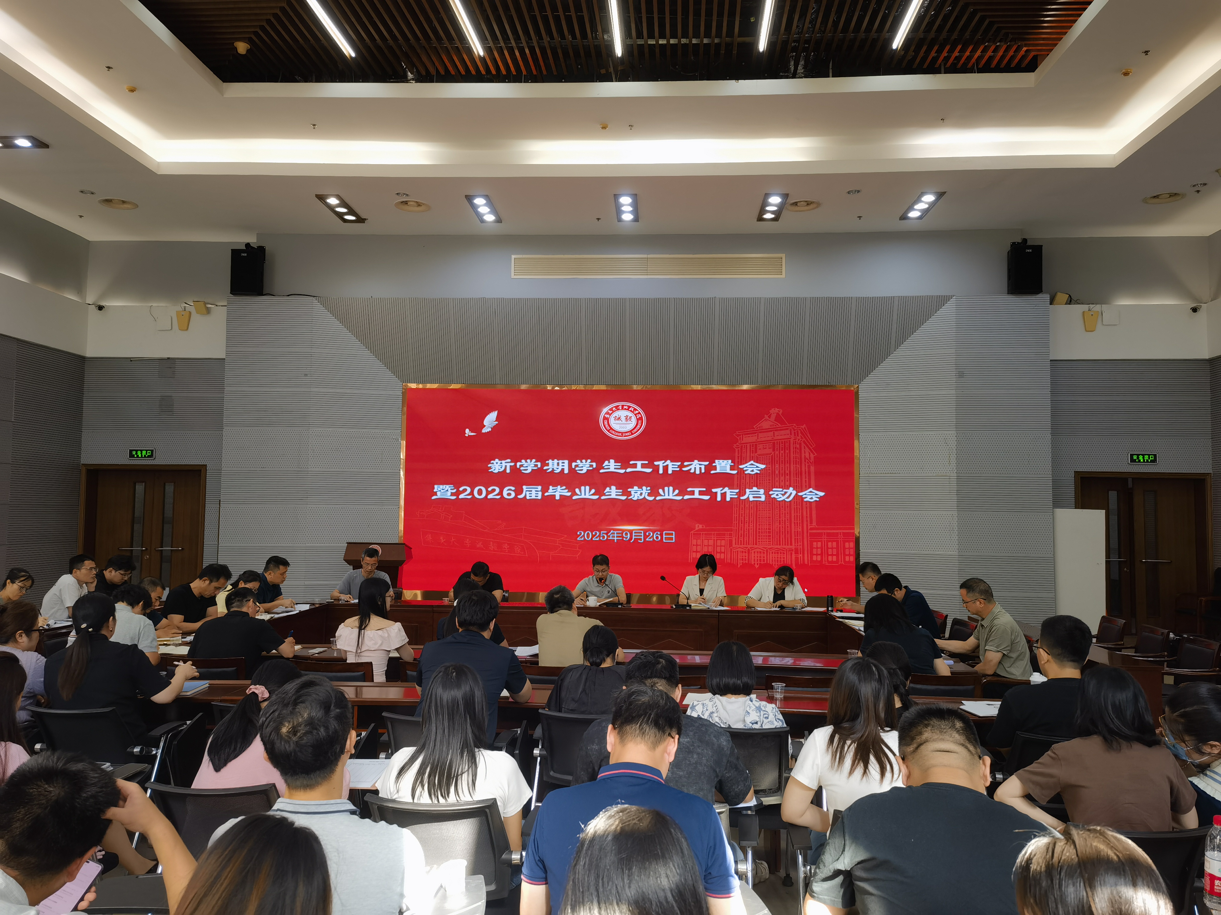 9月26日下午,我院在景祺楼105学术报告厅召开2025年秋季新学期学生工作布置会暨2026届毕业生就业工作启动会,院党委副书记颜承志主持会议并讲话,学工部、就业办、团委、保卫部全体成员,各教学系(院)书记及全体辅导员参加会议。