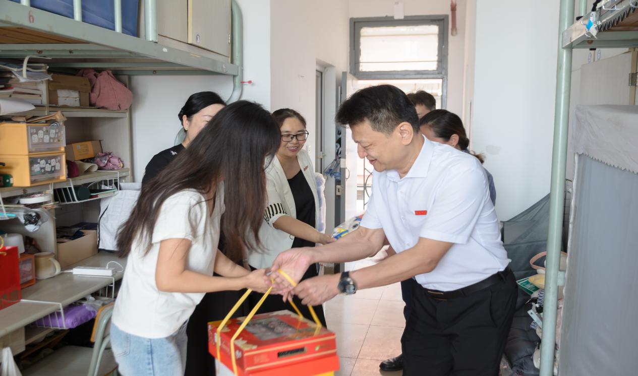 在少数民族学生宿舍,院领导与同学们促膝长谈,仔细询问他们的饮食起居、学业进展及家庭状况,亲手送上节日慰问品。罗钫指出,诚毅校园是各民族学生共居共学的大家庭,希望同学们像石榴籽一样紧紧抱在一起,主动参与校园文化活动,在交流互鉴中夯实专业基础、提升综合素养,以青春之力回馈祖国与家乡的期盼。