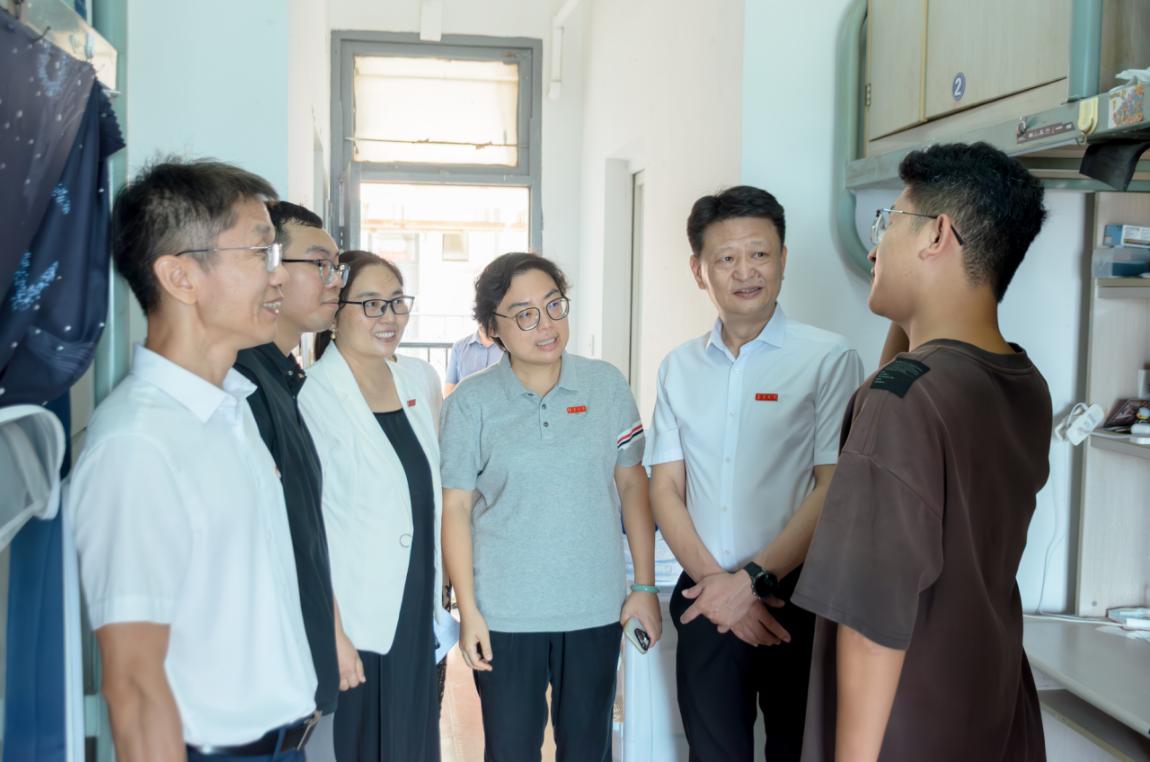 针对不同年级学生,院领导给予了针对性指导。面对2025级新生,许志龙结合自身经历分享成长感悟,引导新生快速调整心态、融入集体生活;在毕业生宿舍,院领导重点询问就业准备情况,鼓励同学们利用假期参与线上招聘会、打磨求职材料,合理平衡求职与毕业论文(设计)安排,保持积极心态。许志龙强调“学院永远是同学们的坚强后盾,我们要主动对接、靠前服务,让每一位诚毅学子都能安心求学、舒心成长”。