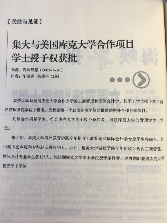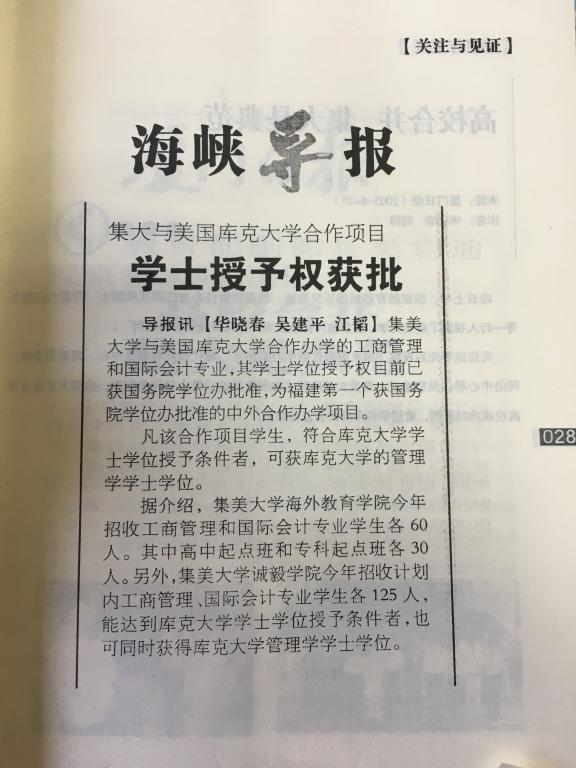 《海峡导报》集大与美国库克大学合作项目学士授予权获批