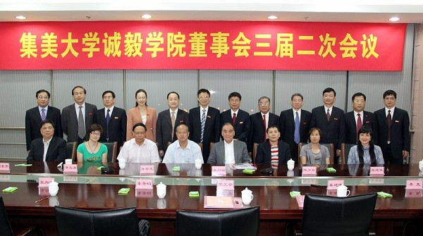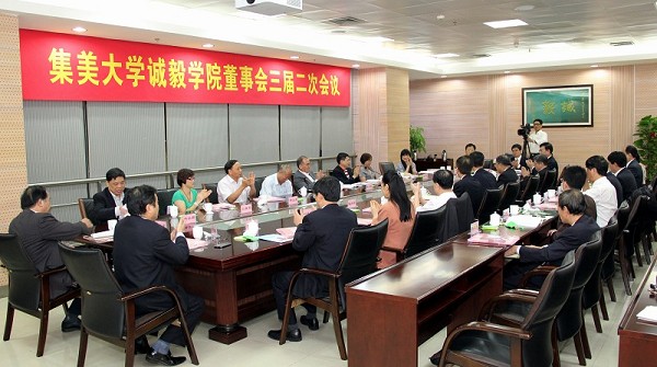 10月21日晚,集美大学诚毅学院董事会三届二次会议在景祺楼17楼会议室召开。集美大学党委书记、诚毅学院董事长辜芳昭主持会议,海外董事李川羽监事长、孙吉龙副监事长、陈少宏副董事长,副董事长王景祺、邱季端、曾琦、副监事长黄晞的代表,张向中名誉董事长,辜建德副董事长,校内董事集美大学校长苏文金、党委副书记叶美萍、副校长李克、副校长郑志谦,全体学院领导出席会议,共商学院发展大计。会议增补集美大学党委常委、副校长李克为董事。