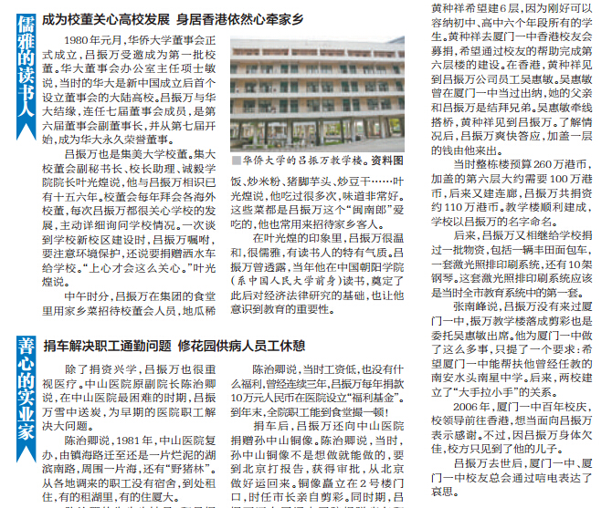 ●2008至2010年,吕振万捐款500万港币,在华大厦门校区捐建“吕振万教学楼”