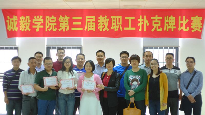 本次比赛采用积分循环制,共赛六轮。比赛现场气氛轻松,每名选手都十分享受比赛,时不时传出愉悦的笑声。比赛渐渐进入高潮,“方块”“红桃”“黑桃”……报“主”声跌宕起伏,选手们根据自己拿牌的情况,默契配合、精确计算、步步为营。比赛的裁判全神贯注、公平执裁,旁观和加油助威的老师纷纷观战,比赛场面紧张而又活跃。经过六轮激烈的比赛,数理教学部、经济系、人文系分别获得前三名,外语教学部、机关一、机关二分别获得第四、第五和第六名。