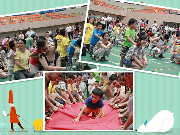 上午九时,活动现场一百多个可爱的诚毅宝宝和爸爸妈妈、爷爷奶奶们伴着欢快的音乐,手拉手一起有序入场。主持人致开幕词后,小朋友和家长的宣誓拉开了活动的欢乐序幕。这场新意萌发的嘉年华活动,既让孩子们来到爸爸妈妈的工作环境,也让大人们进入了童趣世界。钻进彩虹伞,躲开大灰狼,奋力扔纸团,一起做环保,孩子们的一声“爸爸妈妈我爱你!”,“爸爸妈妈辛苦了!”让现场的爸爸妈妈们又惊喜又感动,家庭的温馨和欢乐笼罩在诚毅学院的上空。体育馆里大人、小孩玩得不亦乐乎,孩子们的欢乐童真感染了现场的每一个人!