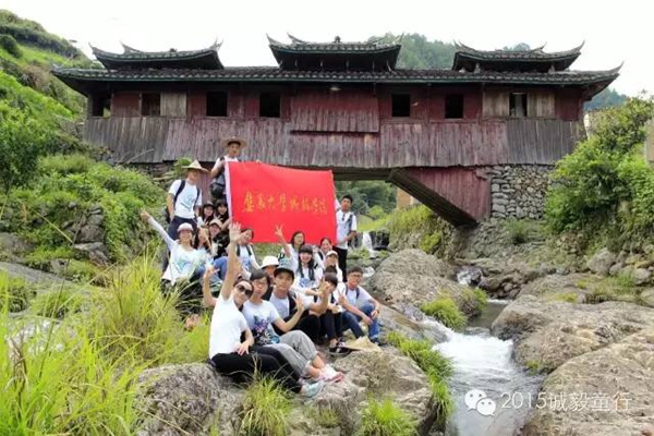 踏上长满青苔的石阶,抚摸泥土堆成的土墙,穿过弯弯曲曲的小巷,支教队队员们唱着歌儿,在山山水水之间摆出各种各样的造型拍照,不时传出的欢笑声,为寂静的山林增添了生气。直至暮色降临,队员们才兴尽而归。