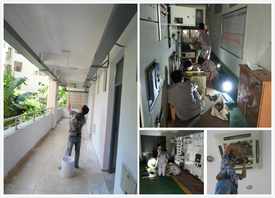 为节约图书馆照明用电,对图书馆公共区域照明进行分区域控制改造;为增加教学楼高层用水水压, 在教学楼9号楼做试点,增加水箱设备;在台风雨季来之前,对航海模拟器屋顶进行防水处理,学生公寓洗衣房洗衣机已经全部检修完成;食堂空调检修也基本完成;14号教学楼地下室网优实验室基建部分改造已经完成,电缆在9月3日之前将全部结束,可投入使用;教学楼拱门上广告排维修工作也将在开学前完成。