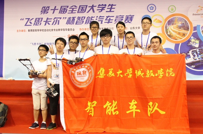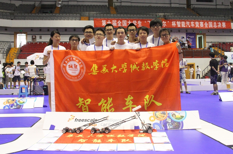 2015年8月26至8月28日,由教育部高等学校自动化类专业教学指导委员会主办、山东大学承办、飞思卡尔半导体公司协办的第十届全国大学生“飞思卡尔杯”智能汽车竞赛全国总决赛在山东大学体育馆举行。我院智能车队晋级全国总决赛的星翼队和星望队不负众望,分别荣获光电平衡组和电磁组全国总决赛二等奖,再次刷新纪录,创我院历史最好成绩。