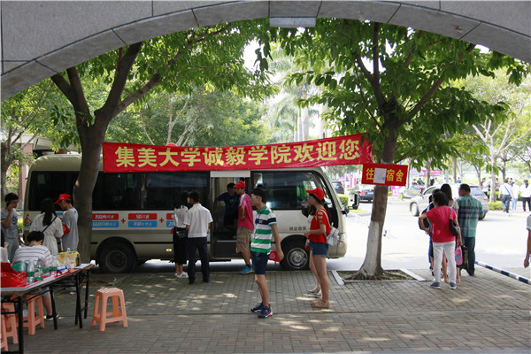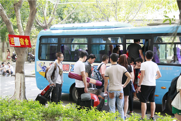 在接送新生的校车前,有几个忙碌的身影,他们一直在帮助新生提行李……来自电子商务1472的陈晨就是负责帮忙搬运行李的志愿者。在早上6点10分,他已经到位等候,不到半个小时,就已经帮忙搬了7次行李。他说,“虽然搬行李重而且累,但是却能传递一份爱与关怀。帮助他人,快乐自己。这是一件很有意义的事,我乐在其中。”来自机械1491的陈洲主要负责引导新生报到,“看到一个个年轻的面孔,就想到去年我刚入学的样貌,当时的学长学姐帮了我很多。”