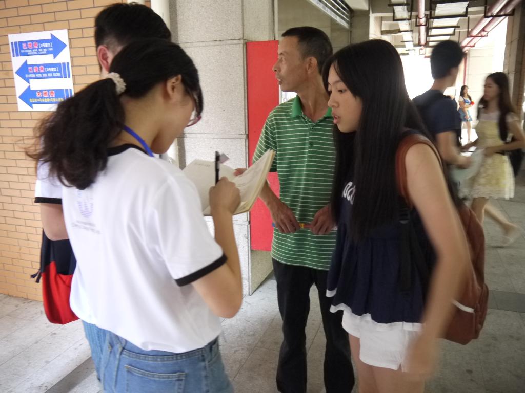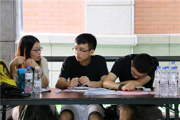 在几千名小鲜肉中,总能一眼发现他们,在各自的工作岗位上秉承志愿服务的精神,为来往的车辆引路;为每位新生答疑解惑;为过往家长、新生们准备茶水,整理休息的场地;为2015级小鲜肉准备报到手册、学院地图;为他们办理相关住宿手续;还帮保安叔叔时刻维持报到现场的秩序……