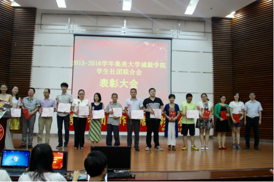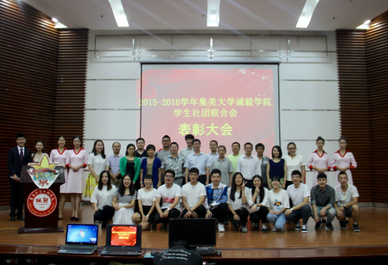 为丰富校园文化生活,提高校园文化生活品质,进一步推动学生社团的自身建设和发展,由院团委主办的2014-2015学年学生社团工作总结表彰大会在景祺楼学术报告厅举行。院党委副书记连志崧,团委书记、就业办主任许弘明、团委相关老师、各社团指导老师,社联社团干部干事们共同参加表彰大会。