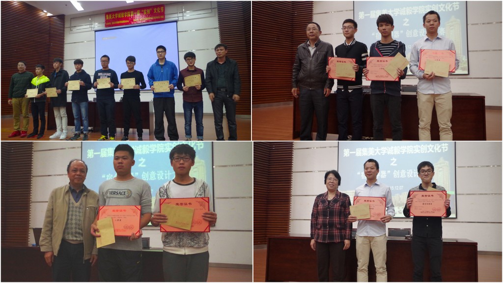 12月7日晚,由诚毅学院应用技术中心与机械工程系联合开展的院首届“实践+创意”文化活动之“宿舍神器”创意设计大赛决赛在景祺楼报告厅隆重举行。本次大赛邀请了诚毅学院应用技术中心主任陈扼西老师、信息工程系主任洪联系老师、机械工程系副主任张全明老师、机械工程系机械基础教研室主任黄健华老师、实验管理中心郑新旺老师及机械工程系叶衔真老师担任评委。诚毅学院应用技术中心副主任、机械工程系党总支书记翁马巷老师,厦门胜嘉元自动化科技有限公司总经理张汉凤先生,诚毅学院应用技术中心薛小建老师,机械工程系办公室主任杨琳老师及部分辅导员老师、团学组织代表出席本次决赛。