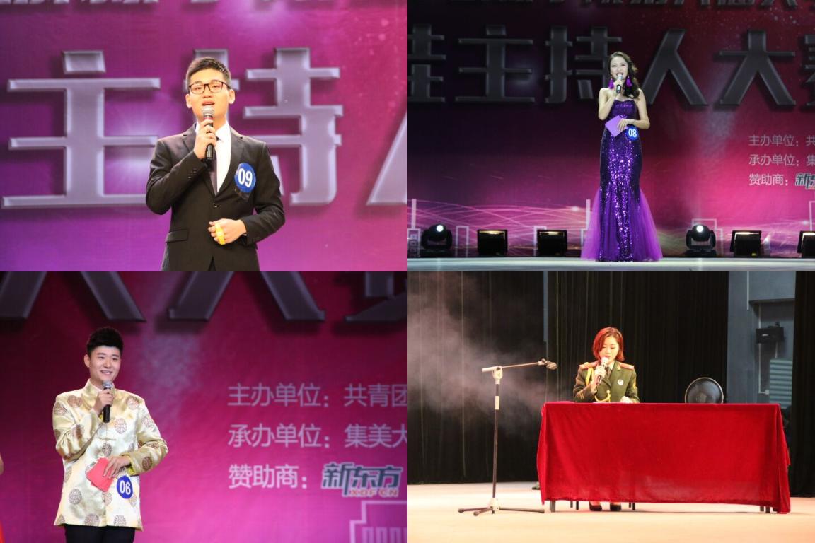 全国啦啦操比赛冠军诚毅宝贝带来了热情洋溢的开场舞秀。本次大赛共分为个人主持及组合主持两大环节。在第一环节的个人主持中,各位选手发挥个人优势,张扬自我个性,以各具特色的主持风格展示个人主持才艺。其中,以军装出场的蔡依蕾同学因其独特的军队出身和沉稳的表现给观众们留下深刻印象。在接下来的组合主持环节中,选手们配合默契,彼此合作过程中碰撞产生的火花将比赛推向高潮。在本环节中,林晨晖同学和韩冰冰同学的默契合作得到大家的认可,林晨晖同学更因其饱含情感的动人的主持风格得到了评委们的认可。蒋有经教授在点评中以著名主持人陈鲁豫为例,对所有选手提出指导,主持应具有现场性和煽情性,有个人的语言特色。