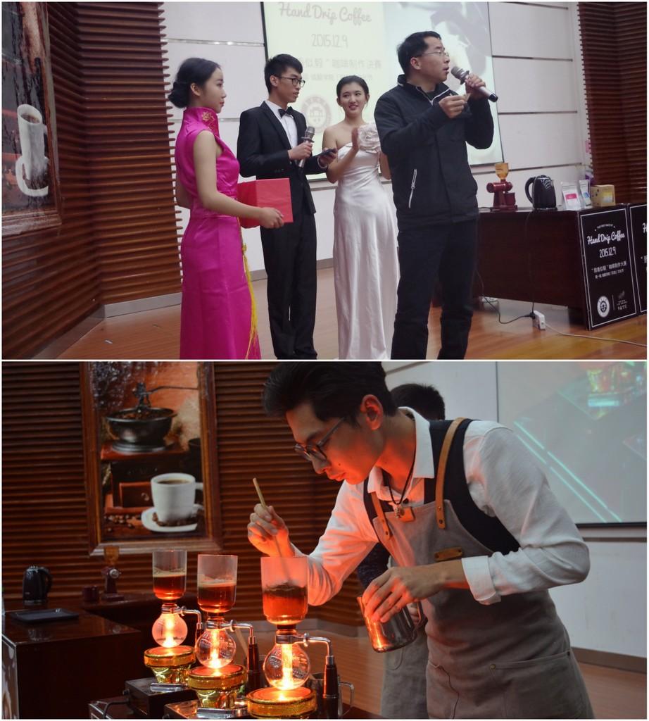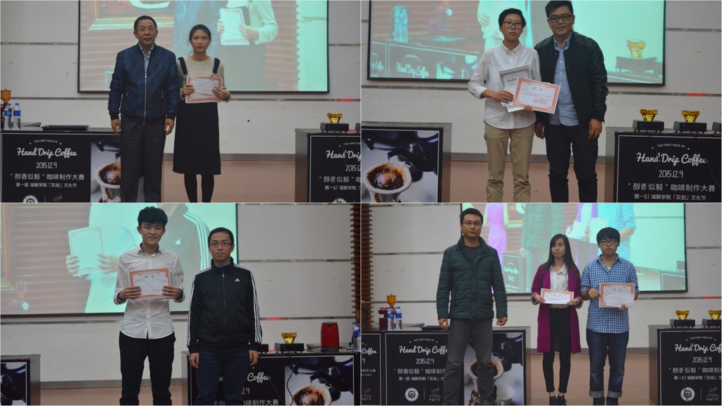 单品学院张林老师的虹吸壶咖啡表演作为本次比赛的压轴节目,较高的操作技术性以及繁琐的制作程序,为大家带来一点实验室味道的精确感。最后,本次大赛的一等奖花落“2758”团队,二等奖与三等奖分别由“嗨Five”与“FANA”团队获得,最佳创意奖及最佳礼仪奖则由“岁月成杯”和“Haloteam”团队获得。至此,本次“醇香似毅”咖啡制作大赛圆满结束。