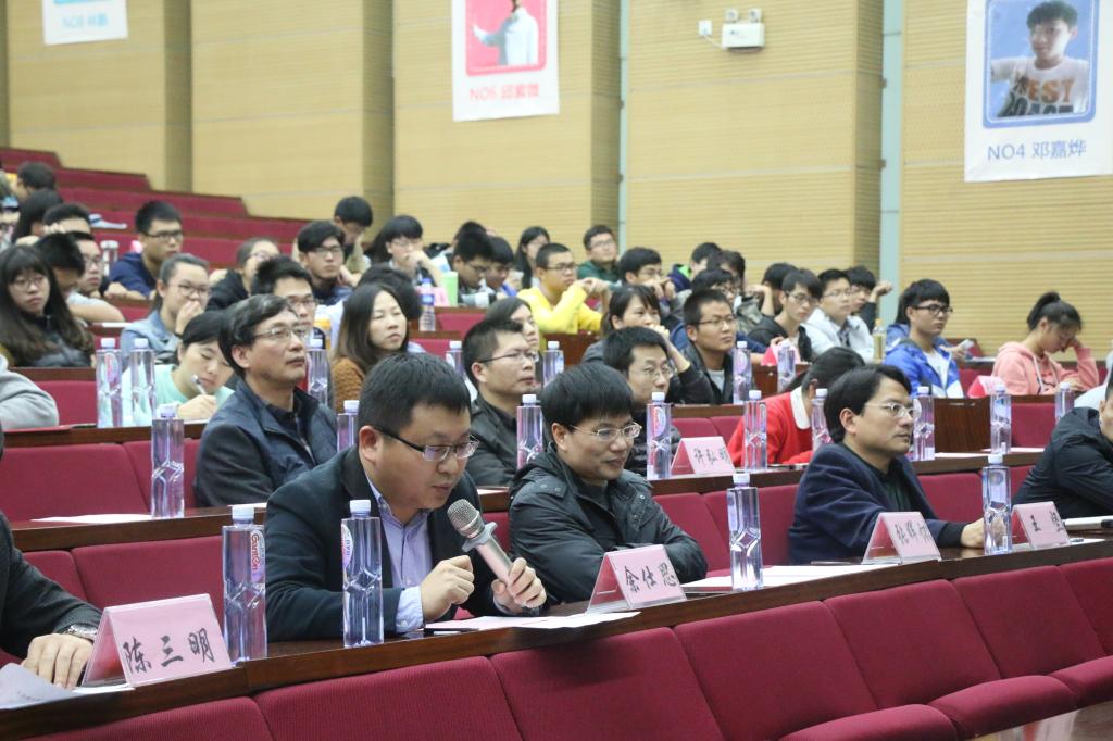 比赛结束后,在选手和评委老师的互动环节中,来自软件1592班的1号选手吴桂阳表示对自己今晚的表现不满意,请教评委老师如何更好的在情景模拟环节演绎出软件工程师的工作状态。针对这一提问,在场的张晖怀老师肯定了他的提问,指出这个环节其实重点考察的是选手的职业素养和能力,而不是机械的展现工作场景,至于具体的工作内容,其实可以通过职场人物访谈、实习、见习等方式来获知真实的职场体验。王坚老师则从另一个角度进行补充,指出真正从事软件工程师工作的人,很多都是热爱这个行业,觉得编程是一件快乐的事情,时间不知不觉很快就过去了。而不是如他刚才演绎的那样,不停的抱怨加班。王坚老师特别强调,如果一个职业给你的总是负能量,让你不停抱怨,就应该考虑这个职业选择是不是你真正想要的,是否要重新规划。两位老师的话,引起了在场选手和观众们的深思。