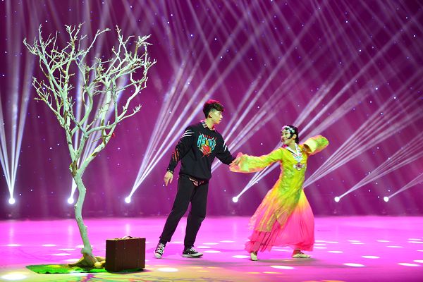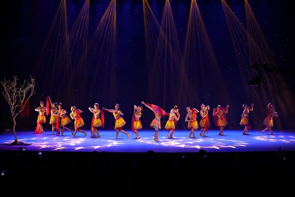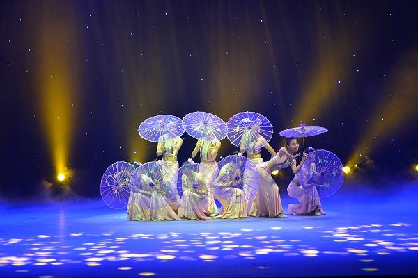 《傣家的女儿傣家的雨》拉开第二篇章的序幕,她们深情又柔美,手中的绢伞灵动飞舞,体现了傣家女儿的温柔与细腻。接下来的双人舞《我的爱》与壮族风情舞蹈《绣球女》让整个晚会现场都沉浸在清新欢快的氛围中。