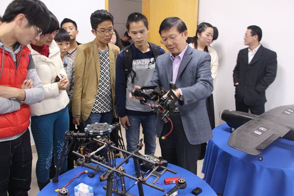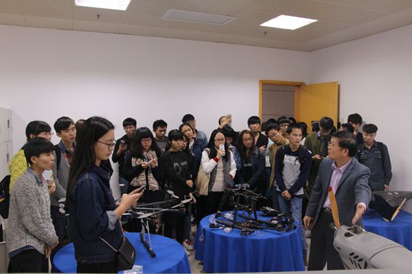 陈水利向同们学介绍了该工作室概况、团队和工作内容,同学们了解到该工作室主要围绕研究计算和实践操作两个部分的内容,并朝着“智能计算”、“图像信息处理”和“数据城市”三个研究方向发展,陈水利还分析了该工作室的三大创新领域:一是模糊信息工程与图像应用,二是无人机低空遥感数据获取技术,三是图像处理与三维重建技术。参观现场,该工作室工作人员还演示了诚毅学院三维全景图,这个项目是我院16名同学利用暑假期间运用几千张实景图,结合专业所学技术拼接完成的,作品效果让现场同学们赞叹不已。陈水利还带领同学们参观无人机等设备,同学们纷纷提问,陈教授一一为同学们作了细心的讲解,他强调“所有的工作研究并不是由我一个人完成,而是很多老师与同学们共同的参与的结果”,他还鼓励同学们要有信心,怀着兴趣,踊跃报名,一起参与到工作室的研究中来。