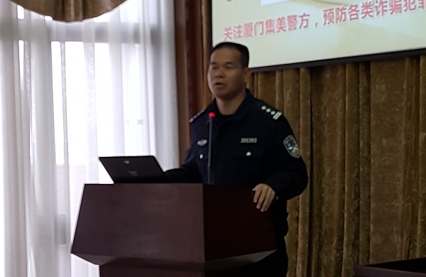 刘伏忠警官结合自己侦破的诈骗案例,对诈骗的特点、原因、危害、预防诈骗的措施等逐一进行了细致的讲解。他强调:“如今诈骗手段花样百出,稍不留心就可能被骗。在实际调查过程中我们发现,大部分诈骗网站都是设在境外,一旦被骗,侦破的难度很大。学生们及时了解诈骗手段、诈骗特点,可以提前在心理上设防,将许多安全隐患消灭在萌芽状态。宣传是防范诈骗、传销案件时成本最低,效果最好的一种手段和方式。”
