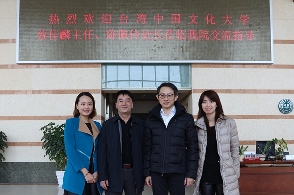 坐谈期间,朱宝荣向远道而来的客人表示热烈欢迎,回顾了我院与台湾中国文化大学相关领导老师交流的历程,提出在双方签订合作框架协议后应进一步加强联系,为实质性合作迈出新的步伐。双方就目前大陆学生在台湾中国文化大学的研读规模、研读时间、专业特色等进行了深入探讨。蔡佳麟重点介绍了台湾中国文化大学联合其30多所台湾姐妹院校一并与大陆高校合作办学的经验和优势,表达了携手其台湾姐妹院校尽快与我院展开实质性合作的意愿。