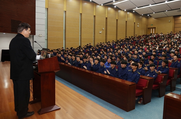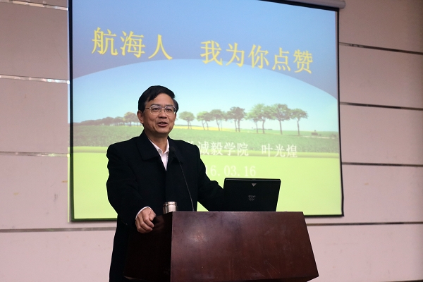 “潮起潮落,时代更迭。随着历史的变迁,海洋的主人不断更迭,而每一次的更迭,都意味着一个时代的结束和另一个时代的兴起,每一次的轮回也都预示着一个国家的衰落和另一个国家的强盛。海洋就像人类文明的晴雨表,它不但在昭告着明天,同时也在时刻提醒着今天的人们。”在结束语中叶光煌以航海人的情怀热情呼吁青年学子们时刻准备好投身航海事业,奉献自己的青春和激情。