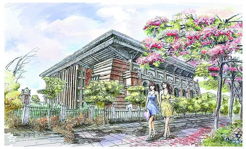 陈洪经常骑着自行车在集美学村的嘉庚建筑群里逛,收集学校各个学院、各个地方的美景,从中选出最有代表性的景色,让老乡何渊手绘出来。