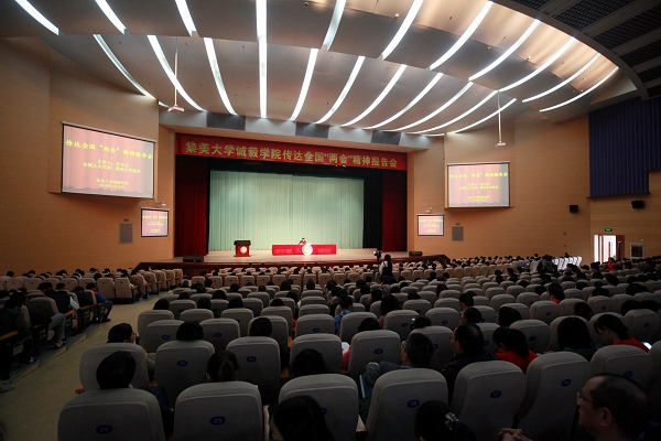 3月30日下午,集美大学诚毅学院召开学习贯彻全国“两会”精神专题报告会,全国人大代表、集美大学校长苏文金教授为我院师生传达全国“两会”的盛况和会议的主要精神并分享亲临盛会的感受。报告会由院党委常务副书记朱晨光主持,院领导、全体教师及大一至大三年级一万多名师生听取了报告会。