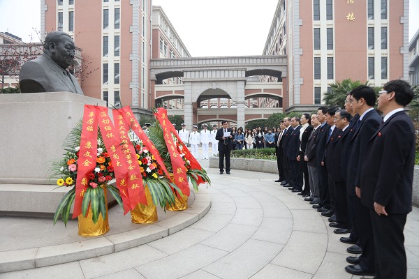 随后,学生代表敬献花篮,领导们上前仔细整理花篮缎带。领导和师生们分别向李尚大先生铜像、陈文确陈六使先生铜像行三鞠躬礼,以表达广大师生的崇高敬意和深切哀思。