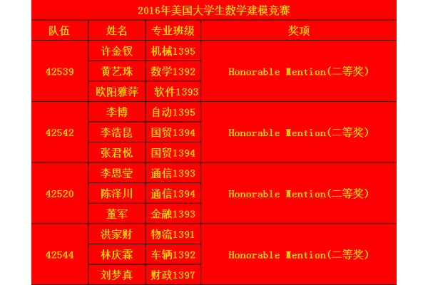 近日,第32届美国大学生数学建模竞赛和交叉学科建模竞赛(MCM/ICM)成绩正式揭晓,集美大学诚毅学院共4支队伍获得Honorable Mention二等奖,这是我院在该赛事取得的又一新突破。