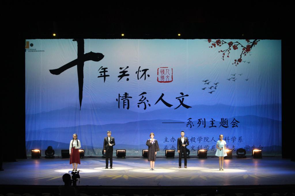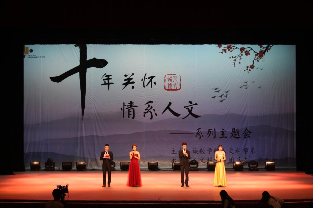 十年风雨同舟,换来今晚的短暂相遇;十年来,一批批人文学子,用爱浇灌,让人文之花绽放每年五月:十年春秋交替,十载辛勤耕耘,十年风雨同舟,十载并肩携手,感谢有你,一路同行。今夜,我们心怀感恩与向往,一起回顾十年风雨路,一起展望下一个十年,我们相信诚毅学院人文科学系下一个十年更精彩。