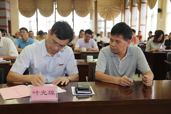 5月30日下午,我院在景祺楼19楼会议室召开2016年校园安全稳定工作会议,院领导叶光煌、郑力强、朱晨光,黄义新、高岩松、连志崧、朱宝荣出席会议。会上,学院还与各教学院系、各部门、各单位负责人签订了2016年《校园综治安全稳定目标管理领导责任书》和《防火安全保证书》。