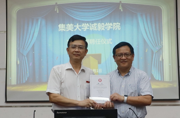 6月1日下午,集美大学诚毅学院举行客座教授聘任仪式,叶光煌院长向香港理工大学物流及航运系罗梅丰博士颁发聘书,并为其佩戴校徽,聘任罗梅丰博士为我院客座教授。聘任仪式后,罗梅丰博士作《关于航运市场的过去、现在和未来》讲座报告,院领导高岩松、商船系相关负责人,交通物流、海商法专业大一到大三学生500多人参加聘任仪式并听取报告。
