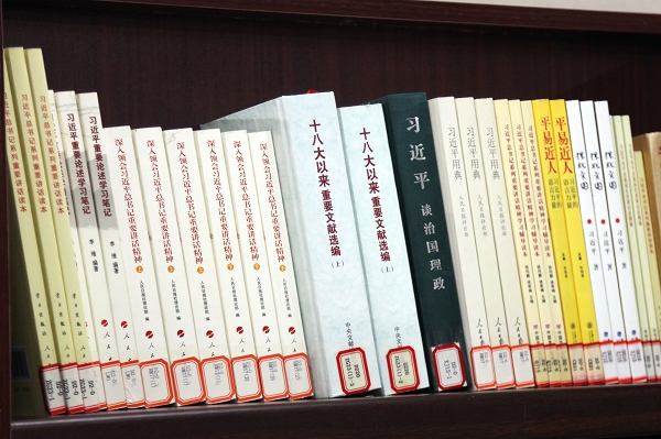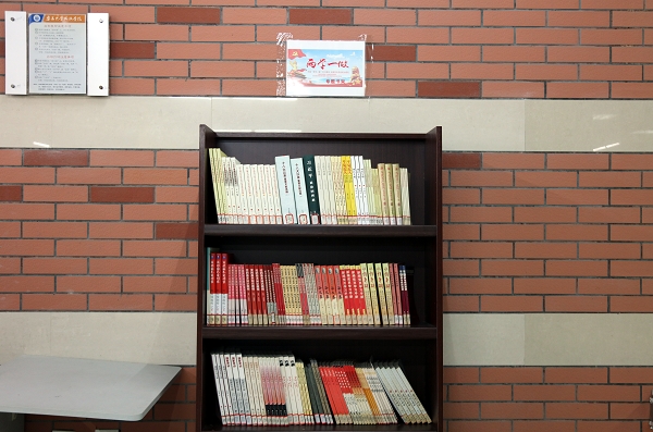 近日,图书馆二楼借阅大厅新设立了“两学一做”专题书架,放在借书机旁边醒目的位置上,这是直属图书馆党支部为深入开展“两学一做”学习教育、响应学院“建设一块理论阵地”的要求,精心挑选和整理了党的理论学习教材和相关系列图书,向全院广大师生党员读者提供理论学习资源服务,让师生们在“两学一做”学习教育中能够更好地“充电”而专门设置的书架。