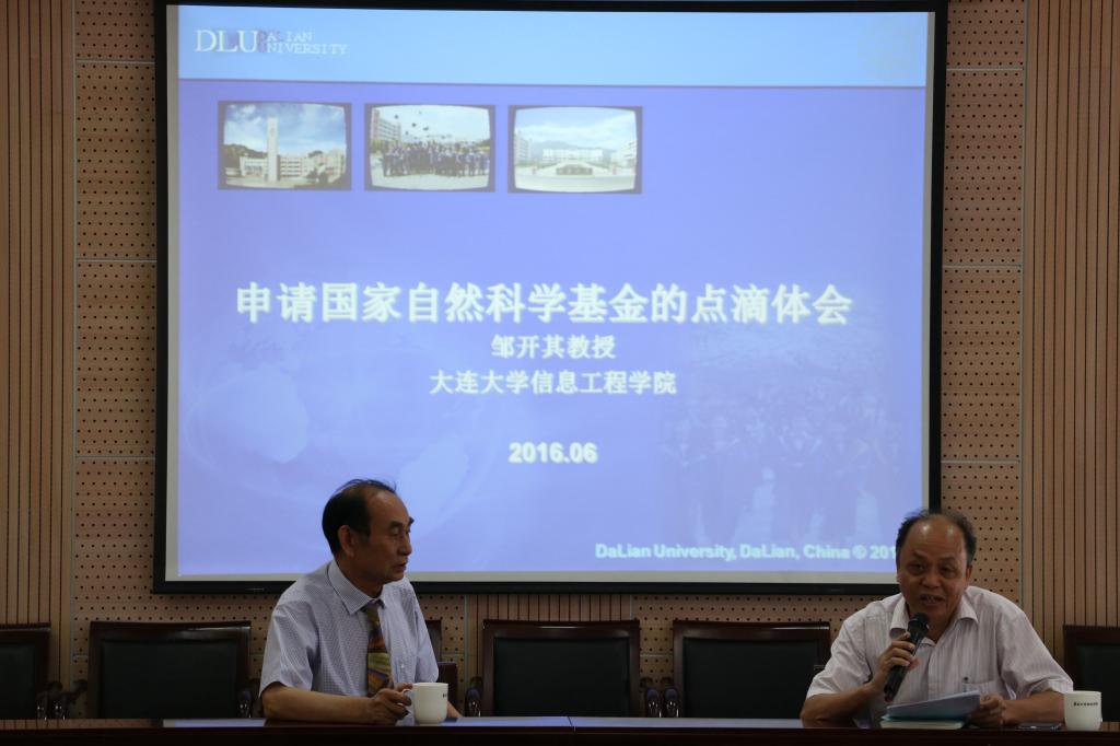 6月28日下午,大连理工大学邹开其教授为我院教师举办题为“如何提高申报国家自然科学基金课题成功率”的学术讲座。讲座由信息工程系主任洪联系教授主持,科研促进部主任陈水利教授、各教研室教师召开主题为,参加讲座。