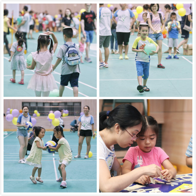 “快乐相伴,健康成长”是本次活动的宗旨,诚毅宝宝们与父母携手入场,领取游园卡后便开始了充满欢乐的嘉年华之旅。会场内开展了顶球跑、地垫交替走、两人三足、“孕妈妈”顶盘接力、手工拼图、传递玻璃珠、分豆子、叠纸杯等十项亲子互动小游戏,并分别命名为幸福面对面、幸福跑不掉、幸福飞奔、稳稳的幸福、幸福我来拼、幸福接力......使活动在充满趣味的同时,洋溢着美满幸福的氛围,深受小朋友们的喜爱。张臻颖老师开心地说:“我觉得游戏环节的设置很合理,孩子的动手能力和视觉思维都能在游戏中得到提升。”缤纷的气球映着天真的笑颜,孩子们的世界就是如此简单纯净。陈洁明老师表示:“亲子互动的游戏能够增进父母与孩子的沟通交流,分豆子游戏也很好地培养了孩子们的耐心。”家长和孩子齐心协力、过关斩将,玩得不亦乐乎,现场充满欢声笑语。