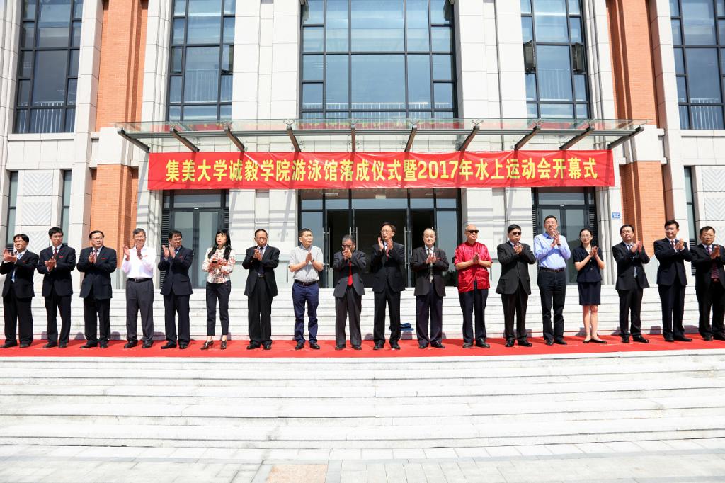 10月21日上午,集美大学诚毅学院举行游泳馆落成仪式暨2017年水上运动会开幕式,校领导辜芳昭、郑志谦、于洪亮、曹敏杰,学院名誉董事长张向中、副董事长辜建德,原校党委副书记叶美萍,副董事长陈少宏、副监事长孙吉龙,海内外董事李川羽、王景祺、黄晞、曾琦的代表,学院领导班子成员、师生代表参加仪式。