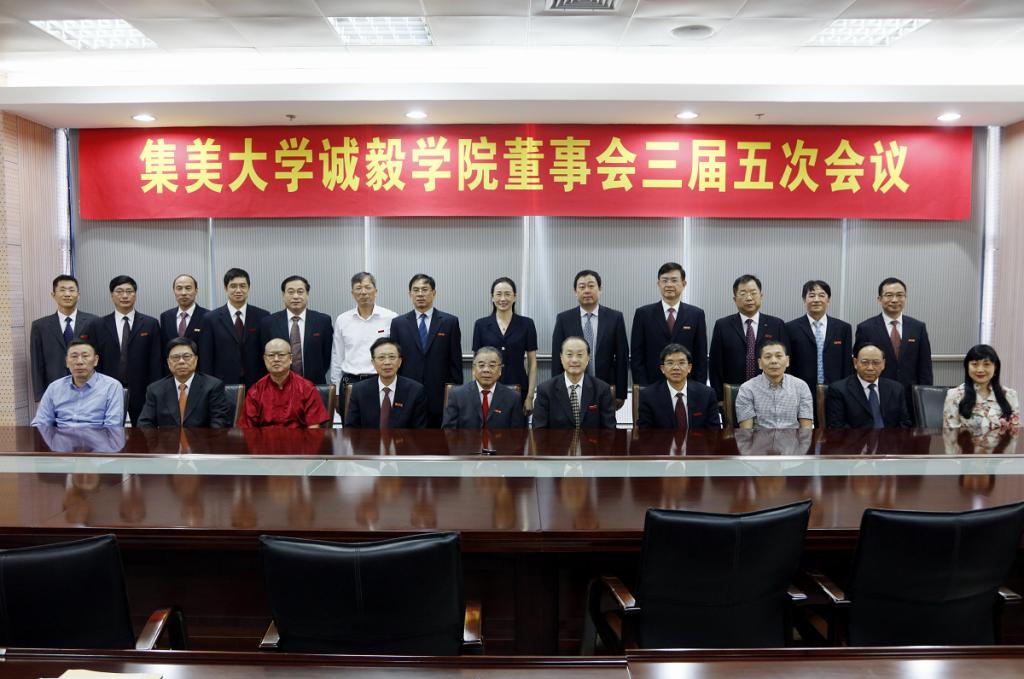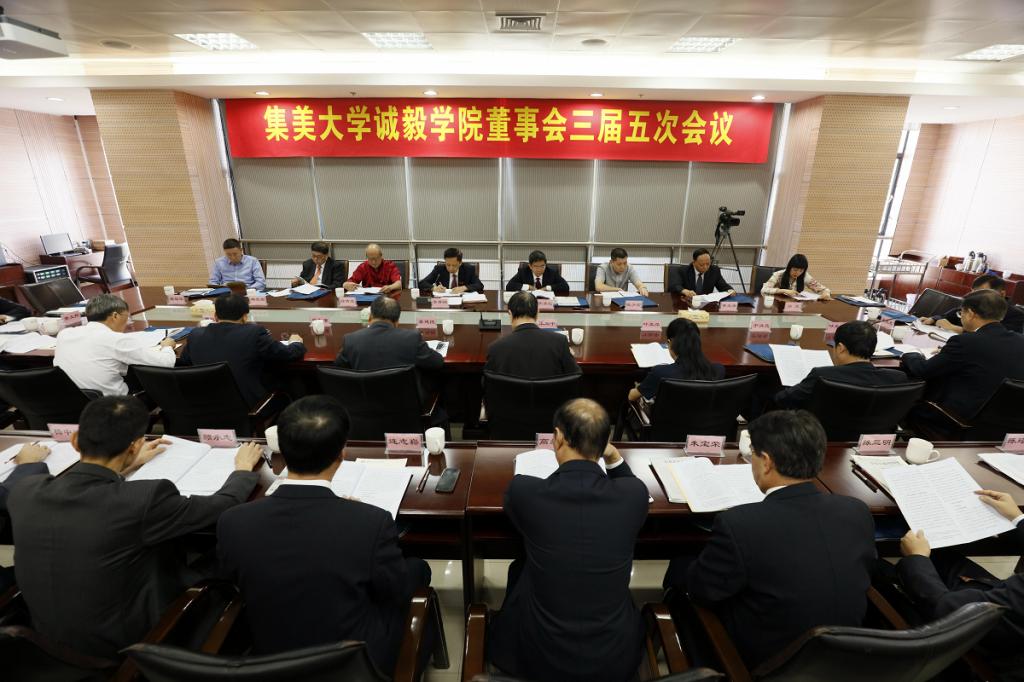 10月21日上午,集美大学诚毅学院董事会三届五次会议在景祺楼17楼会议室隆重召开,集美大学党委书记辜芳昭主持会议。会议根据《集美大学诚毅学院章程》的规定,对董事会部分组成人员进行了调整,推举集美大学党委副书记、校长李清彪任董事长,增补集美大学党委常委、副校长于洪亮为董事。