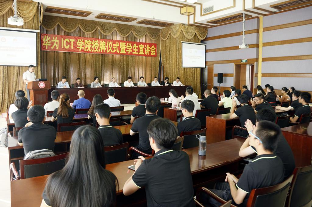 仪式结束后,学生听取“华为ICT学院人才联合培养解决方案”专业讲座,领导嘉宾前往景祺楼17楼会议室进行校企合作ICT人才生态研讨座谈会。