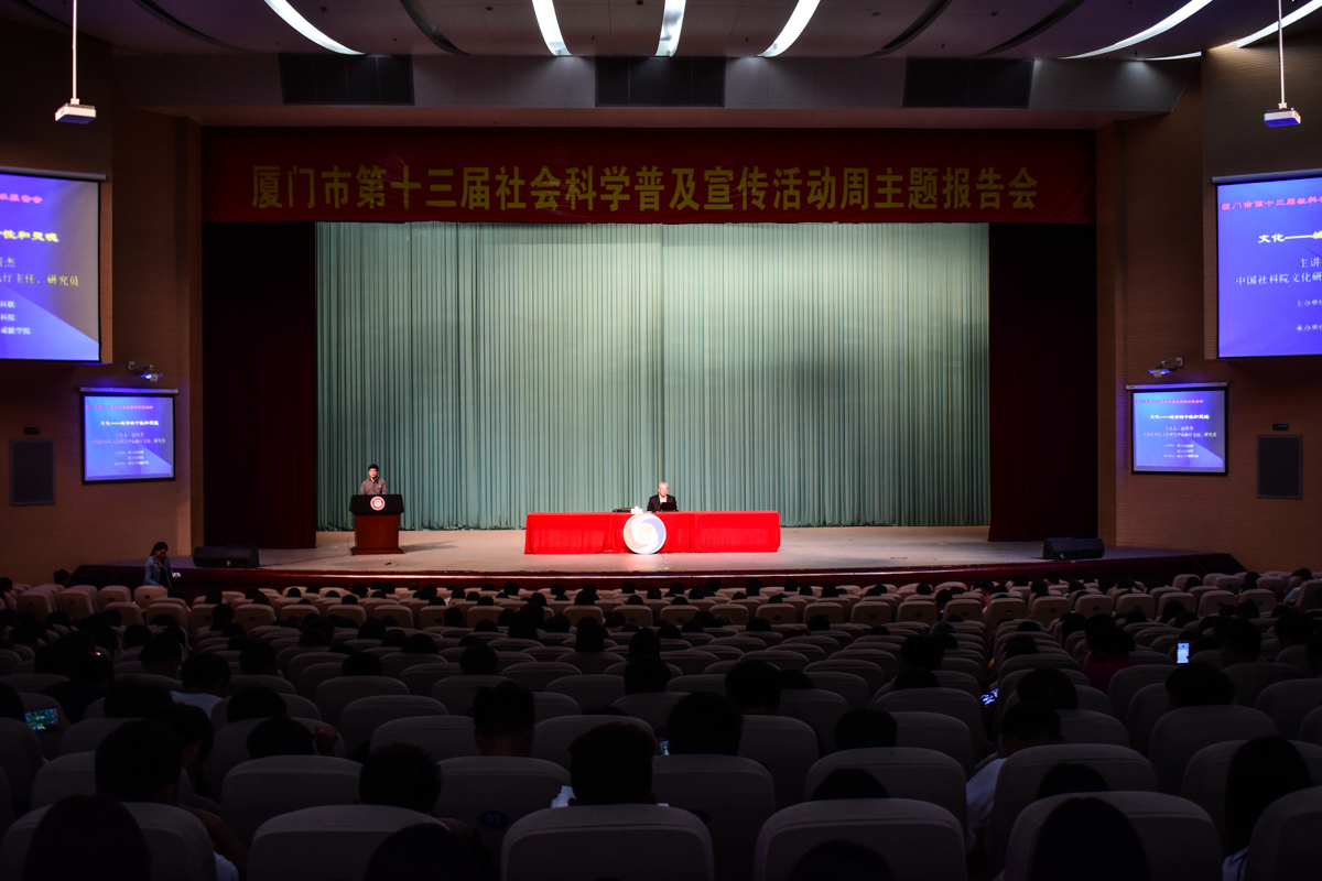 11月8日下午,由厦门市社科联、市社科院主办,我院承办的“厦门市第十三届社科普及周学术报告会”在诚毅影剧院举行,中国社会科学院文化研究中心执行主任赵培杰研究员应邀来我院作题为“文化——城市的个性和灵魂”报告会。厦门市社科院副院长李桢参加报告会,报告会由院党委副书记连志崧主持,我院部份师生代表现场听取了讲座。