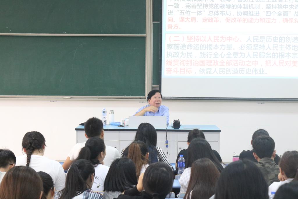 郑又贤,享受国务院特殊津贴,是福建省理论宣讲专家库首批专家,也是中共福建省委省直机关工委特聘教授。他结合自身精深的理论研究,就习近平总书记在党的十九大报告中提出大会主题、五年成就和历史性变革、现阶段社会主要矛盾变化、新时代中国共产党的历史使命、新时代中国特色社会主义思想和基本方略、新时代中国特色社会主义发展的战略安排等方面的主要创新点作了详细解读,并从理论创新和实践创新两个层面进行了深刻阐释。郑又贤对党的十九大报告的创新点的解读,全面系统、见解独到、深入浅出,有助于师生更深入地领会党的十九大报告精神。