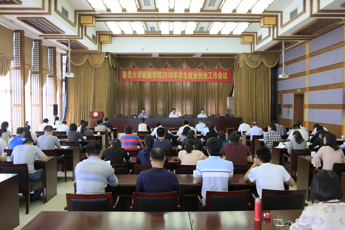 4月12日下午,集美大学诚毅学院在景祺楼19楼会议室召开2018年学生就业创业工作会议。院领导叶光煌、黄义新、连志崧,教务部、学工部、就业办、团委负责人,各教学院系主任、总支书记、就业联系人,各教研室主任、副主任、专业负责人,全体辅导员参加会议。