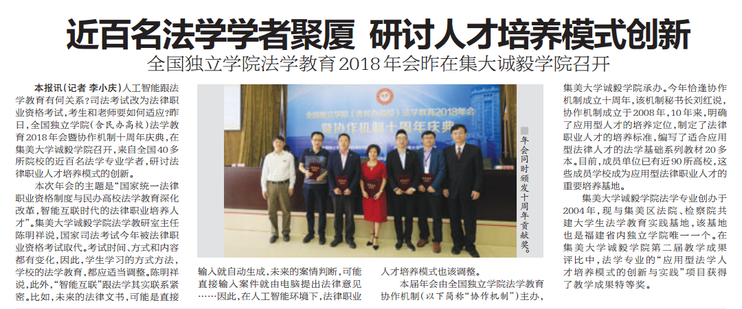 4月22日,《厦门晚报》报道全国独立学院法学教育年会在我院召开消息,现全文转载如下:
