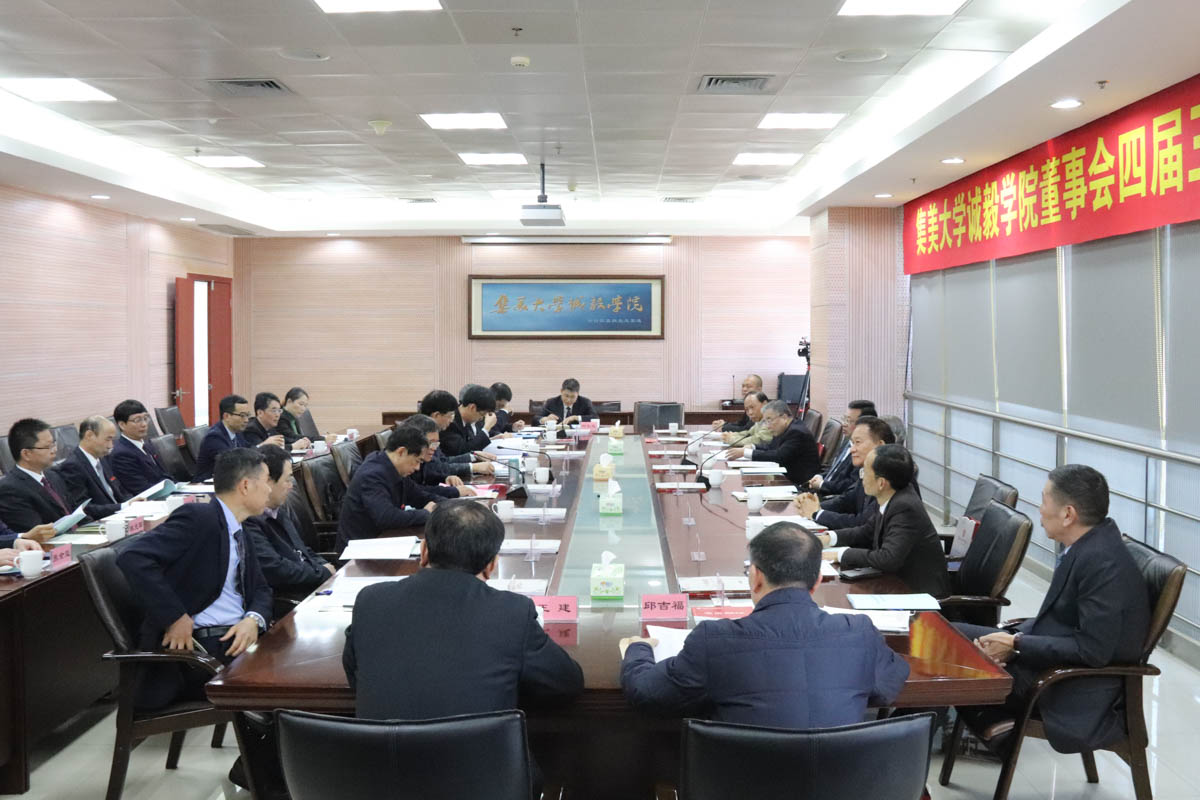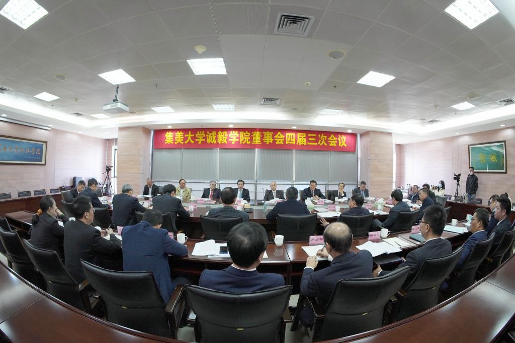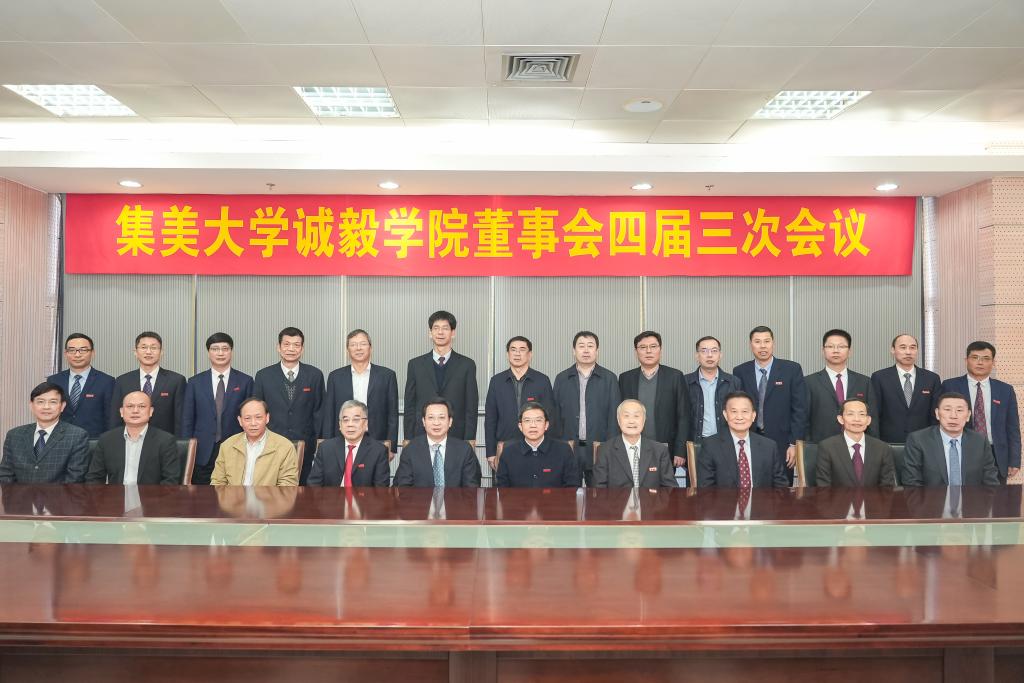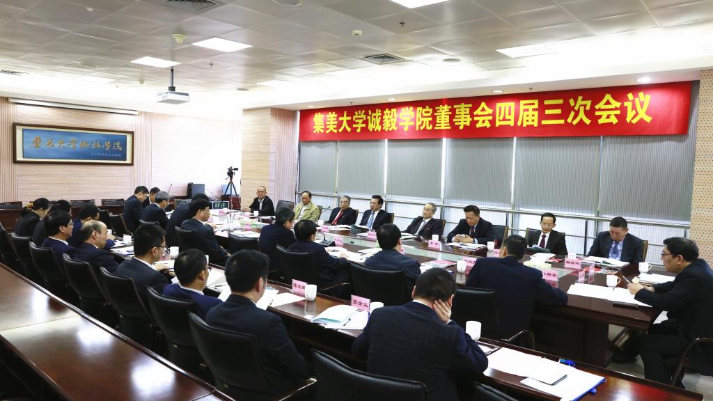 2020年12月26日上午,集美大学诚毅学院董事会四届三次会议在景祺楼17楼会议室召开。集美大学校领导沈灿煌、李清彪、郑志谦、洪文建、于洪亮、曹敏杰,老领导张向中、辜建德,诚毅学院董事会、监事会成员或代表出席会议,学院领导班子成员等参加会议。会议由集美大学校长、诚毅学院董事长李清彪主持。