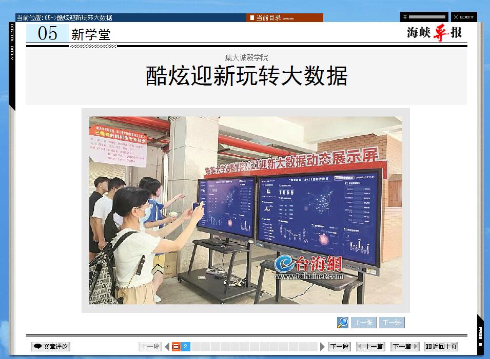 为了更好地喜迎新生,直观展现迎新动态,集大诚毅学院在现场摆上了酷炫的“迎新大数据动态展示屏”。展示屏里实时滚动更新报到人数、男女生报到率、各院系报到情况、缴费审核情况、军训服领取人数、宿舍入住情况,以及厦门站、高崎机场、集美汽车站等抵达站点统计数据。