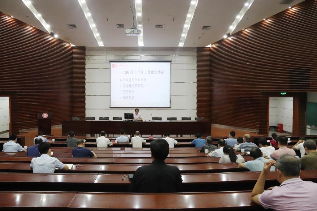 院党委副书记、院长梁新潮教授作题为《着力形成专业集群 聚集打造特色项目 推动“一流诚毅”建设提速增效》主题发言报告。他简要总结了上半年工作情况,明确和布置了下半年主要工作任务;重点分析了“一流诚毅”的推进情况和创建成果,围绕学院“十四五”发展规划和“一流诚毅”建设目标差距,对下一阶段重点工作做了战略规划部署。针对如何推动“一流诚毅”建设提速增效,梁新潮提出两点意见:一要着力形成专业集群,把专业集群建设做出特色作为本学年的工作重点,着力形成“工”字类、“法”字类、“海”字类、学前教育类、管理类等五个专业集群;二聚焦打造特色项目,以打造特色项目为抓手,在保持原有七个特色项目基础上,挖掘打造新的特色项目,培育电子信息类考研专班,设计榫卯结构建筑类系列项目,强化学科竞赛的示范带动作用,创建嘉庚教育文化传承基地,探索建立全员导师体系。