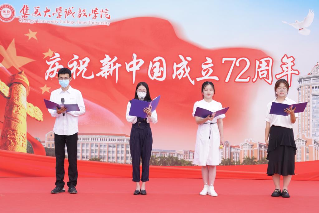 值此中华人民共和国成立72周年、中国共产党成立100周年之际,学院举办此次升旗仪式,旨在为进一步加强我院青年学生的新时代爱国主义教育,把爱党、爱国和爱社会主义高度统一,自觉投身奋斗“第二个百年”新征程,号召诚毅学子为中华民族伟大复兴贡献青春和力量,同时,也为增强我院青年学生共抗疫情的信心和决心,坚决打赢这场疫情防控阻击战。