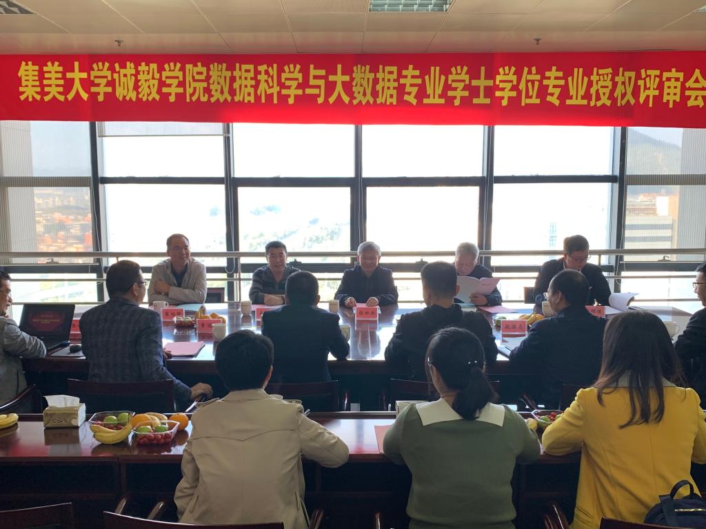 12月9日,由厦门大学郭晓峰教授、华侨大学郑志刚教授、集美大学陈水利教授、厦门理工学院翟绍辉教授和闽南师范大学林耀进教授5人组成的专家评审组对我院数据科学与大数据技术专业学士学位授予权进行评审。副院长陈光田教授,教务部、信息工程系相关负责人及相关教师参加了评审会。