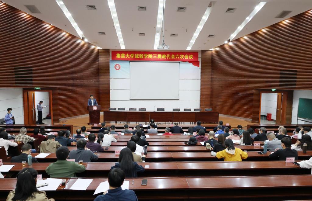 3月30日,集美大学诚毅学院三届教代会六次会议在景祺楼104报告厅召开。正式代表88人参加会议,会议由院部门工会主席游永忠主持。