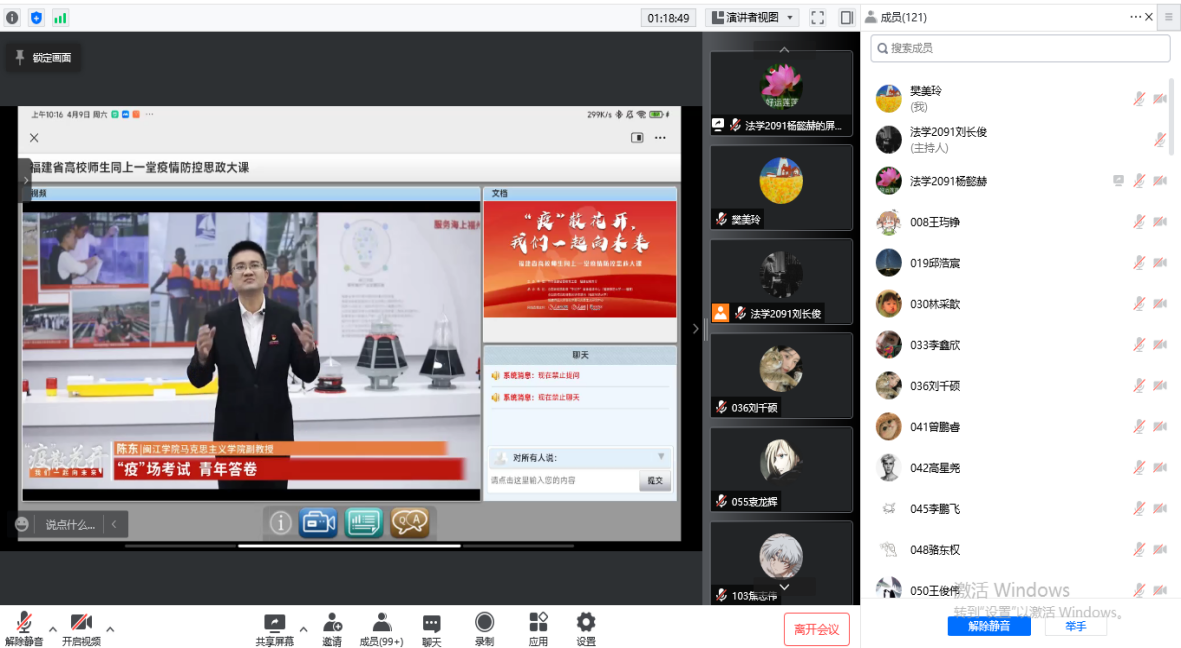 4月9日,省委教育工委、省教育厅面向全省高校师生举办以“‘疫’散花开,我们一起向未来”为主题的“同上一堂疫情防控思政大课”在线直播活动,我院马克思主义学院全体教师、习近平新时代中国特色社会主义思想读书社师生、各教学系(院)近15200名学生共同聆听我省抗疫一线的感人故事,学深悟透党中央关于疫情防控的决策部署。